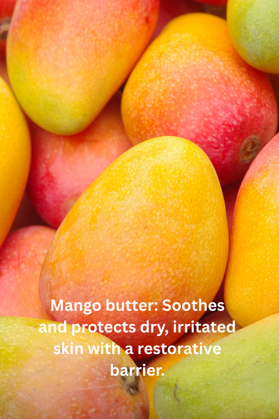 - Hydrates and nourishes with mango butter, grape seed oil, avocado, cocoa & coconut oils