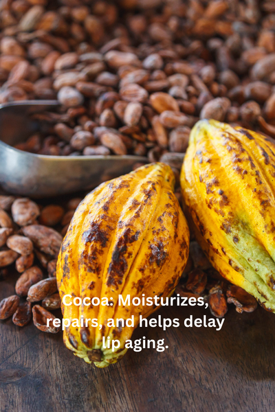 Mango Butter (Mangifere Indica), Vitis Vinifera (Grape) Seed Oil , Theobroma Cacao (Cocoa) Seed butter , Cocos Nucifera (Coconut) Oil, Persea Gratissima (Avocado), Ricinus Communis (Castor) Seed Oil, , Copernicia Cerifera (Carnuba) Wax, Glycerin, Candelilla Wax, , Simmondsia Chinensis (Jojoba) Seed Oil, Persea Gratissima (Avocado) Theobroma Grandiflorum (Cupuacu) Butter, Tocoperol (Vitamin E), Vitis Vinifera(Grape) Seed Oil, Cinnamonum Zeylanicum (Cinnamon) Bark, Extract, Lavandula Angustifolia (Lavender) Flower Extract, Hydrastis Canadensis (Goldenseal) Extract. Size